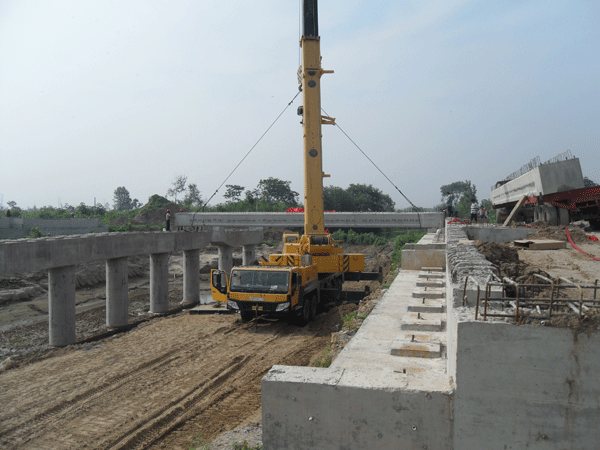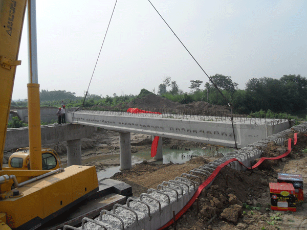 2012年7月22日9時16分,隨著施工現(xiàn)場鞭炮、禮花齊鳴,亳州市南擴二路漳河橋安裝正式開始。亳州市重點局副局長郭來運、第四項目辦主任修功華、技術(shù)組組長包厚禮、南擴二路項目部全體成員參加梁板安裝儀式。