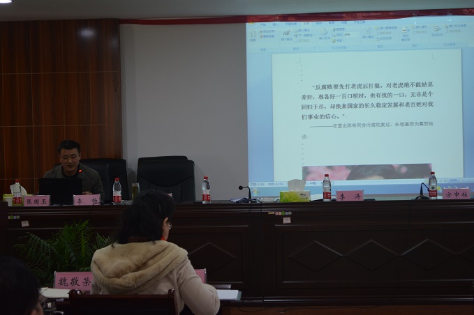 李書記以“筑牢反腐倡廉思想防線,樹立正確廉潔從業(yè)觀”為主題,從古今中外各類腐敗案例導(dǎo)入,詳細(xì)解讀了中央“八項(xiàng)規(guī)定”、“六項(xiàng)禁令”、反“四風(fēng)”、黨的群眾路線教育實(shí)踐活動及“三嚴(yán)三實(shí)”的深刻內(nèi)涵,重點(diǎn)闡述了反腐倡廉工作的重要性、必要性和長期性,要求公司各級領(lǐng)導(dǎo)干部尤其是年輕技術(shù)干部要認(rèn)真履行職責(zé),提高廉潔意識,筑牢反腐倡廉防線,樹立正確的廉政觀。