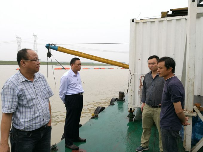 李總一行深入施工現(xiàn)場檢查施工情況并現(xiàn)場聽取了項(xiàng)目經(jīng)理對工程概況、施工情況所做的簡要匯報。李總重點(diǎn)詢問了松垾圍堰模袋砂施工情況及船舶情況后,對項(xiàng)目所取得的成績給予了肯定,并提出了兩點(diǎn)要求:一是要優(yōu)化施工方案、加快施工進(jìn)度、做到安全生產(chǎn)。二是要關(guān)心船隊(duì)船員的生活,要讓船員們努力工作,生活愉快。
