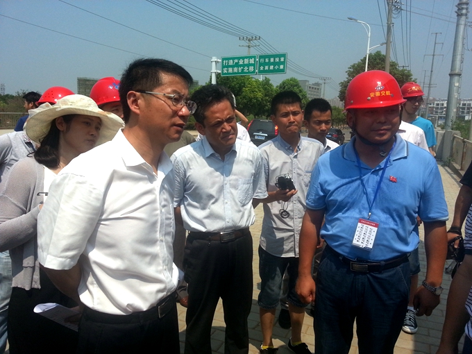 2016年7月28日上午10時,巢湖市市長張生在巢湖市重點局局長袁浩及相關(guān)人員陪同下,蒞臨安徽交航承建的亞父路工程施工現(xiàn)場,視察指導(dǎo)工作。