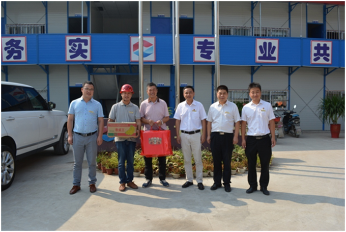 丹桂飄香時(shí),月圓中秋到。9月14、15日,亳州建工總經(jīng)理方申柱、副總經(jīng)理劉軍、副總經(jīng)理兼財(cái)務(wù)總監(jiān)李現(xiàn)龍、總經(jīng)理助理馬建一行分別前往亳州建工承建的鄭店子項(xiàng)目部、老煙廠項(xiàng)目部、創(chuàng)客空間項(xiàng)目部、駕考中心項(xiàng)目部,看望慰問(wèn)在節(jié)日期間仍處于生產(chǎn)一線辛勤作業(yè)的工作人員,向他們致以節(jié)日問(wèn)候。方總一行把節(jié)日慰問(wèn)品送到了各項(xiàng)目部員工的手中,并囑咐大家,在施工過(guò)程中,一定要保質(zhì)、保量、保安全,希望大家再接再厲,克服困難,出色的完成施工生產(chǎn)任務(wù)。