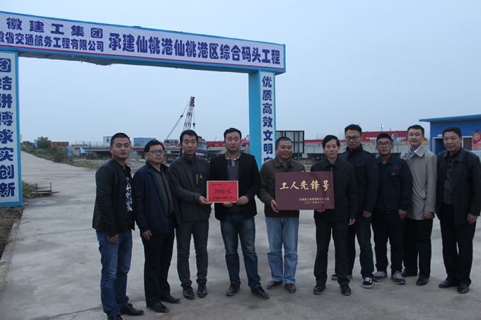 最后,考核組對仙桃港碼頭項目進行“工人先鋒號”授牌儀式,徐主席還特地為長期奮戰(zhàn)在偏遠地區(qū)的項目職工送來了2000元“職工書屋”專項基金。