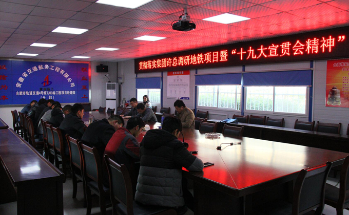 2017年12月24日下午,合肥市軌道交通4號線03標潛口路站項目部召開貫徹落實集團公司許總調(diào)研地鐵項目暨“十九大精神”宣貫會,公司副總經(jīng)理侯力,紀委書記、工會主席李楊,總工辦負責人衛(wèi)邦齊及項目部各部門負責人參加,會議由侯總主持。