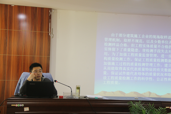培訓(xùn)中,李淮南根據(jù)國(guó)家頒布的相關(guān)文件和技術(shù)法規(guī),向大家闡述了強(qiáng)化見證取樣送檢和檢測(cè)過程管理的重要性,針對(duì)現(xiàn)階段見證取樣送檢制度執(zhí)行中存在的問題進(jìn)行對(duì)策解讀,并結(jié)合工作實(shí)際,向大家詳細(xì)介紹了質(zhì)量預(yù)控標(biāo)準(zhǔn)化管理、施工現(xiàn)場(chǎng)質(zhì)量標(biāo)準(zhǔn)化管理和實(shí)現(xiàn)質(zhì)量標(biāo)準(zhǔn)化的措施及推進(jìn)計(jì)劃。