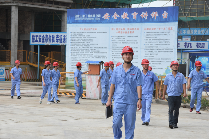 10日下午,大家在匆匆吃過午飯后便馬不停蹄的趕到阜陽臨泉縣廬陽現(xiàn)代產(chǎn)業(yè)園南園安置區(qū)項(xiàng)目。此項(xiàng)目分別由安徽三建和安徽水利承建。我們剛進(jìn)項(xiàng)目施工現(xiàn)場,便被整潔大方的施工環(huán)境給震撼,雖然項(xiàng)目還在施工狀態(tài),但施工現(xiàn)場的安全文明施工在細(xì)節(jié)上給大家提供了學(xué)習(xí)的樣板,無論是道路的整潔、施工現(xiàn)場的安全文明宣傳、整個(gè)施工現(xiàn)場的布置還是黨建工作的宣傳,都讓我們學(xué)到了很多辦公室之外的東西。
