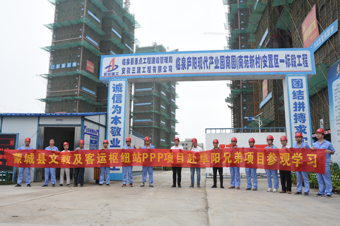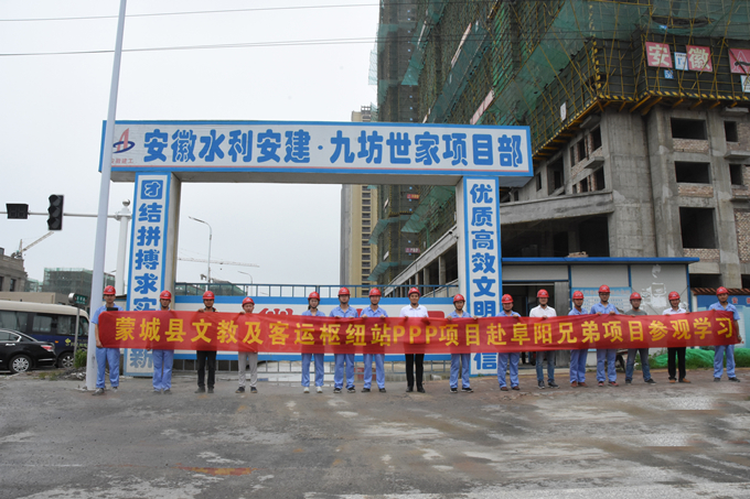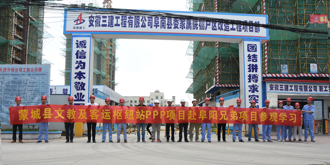 2018年7月10日,在公司第二工程分公司副經(jīng)理王菲及蒙城PPP項(xiàng)目經(jīng)理李道生的帶領(lǐng)下,蒙城PPP項(xiàng)目組織開展“走出去、學(xué)回來”系列活動,赴阜陽兄弟項(xiàng)目參觀學(xué)習(xí)。