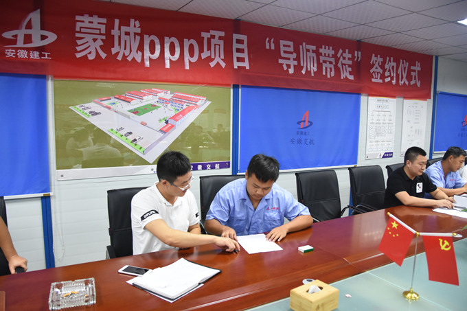 8月15日,蒙城項(xiàng)目組織開(kāi)展“導(dǎo)師帶徒”簽約儀式,公司第二工程分公司副經(jīng)理王菲、蒙城PPP項(xiàng)目執(zhí)行經(jīng)理李道生及項(xiàng)目部40余人參加此次活動(dòng)。
