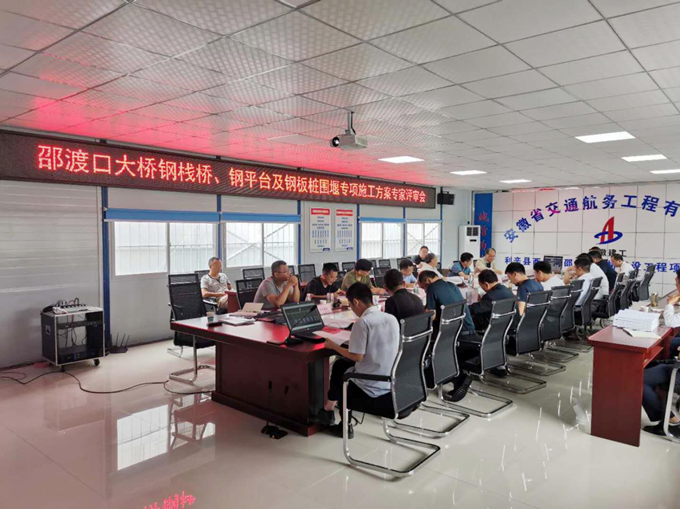 7月19日上午,安徽交航利辛縣西淝河邵渡口大橋建設(shè)工程鋼棧橋、鋼板樁圍堰專(zhuān)項(xiàng)施工方案專(zhuān)家評(píng)審會(huì)在利辛縣召開(kāi)。公司黨委委員、副總經(jīng)理張瓊主持會(huì)議。