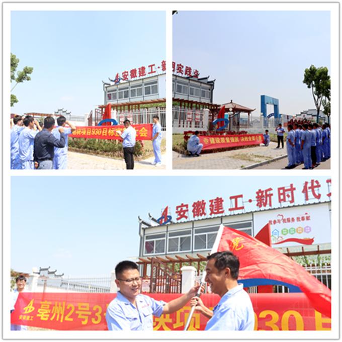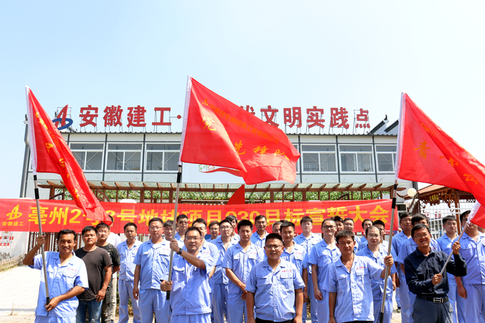 當天,驕陽似火。亳州2號3號地塊項目經(jīng)理史冠蘭莊重地給黨員們授予“黨員先鋒隊”“黨員突擊隊”紅旗,給青年突擊隊員們授予“青年突擊隊”紅旗,給工人們授予了“工人突擊隊”紅旗,并提出了四點要求:一是要緊緊圍繞2號地塊930目標任務(wù)開展突擊活動。全體黨員干部、青年同志和工人先鋒要充分發(fā)揚不怕吃苦、勇于負重,敢打硬仗、能打硬仗的優(yōu)良傳統(tǒng),切實發(fā)揮“黨員先鋒隊”“黨員突擊隊”“青年突擊隊”和“工人先鋒隊”,在“急、難、險、重”任務(wù)中的生力軍作用。二是要把搶工大干與錘煉黨員意志相結(jié)合。黨員干部、青年同志和工人同志們要充分發(fā)揮模范帶頭作用,深入項目一線,以身作則爭搶工期。要在此次搶工大干中拓展本領(lǐng)、錘煉意志、增強黨性。三是要把搶工大干與勞動競賽充分結(jié)合,把勞動競賽的重拳落在工程進度上。四是要充分發(fā)揮“黨建帶工建團建”作用?!包h員先鋒隊”要引導(dǎo)好“青年突擊隊”“工人突擊隊”開展好突擊任務(wù),黨員干部與青年、工人同志們要相互關(guān)心,密切配合,充分發(fā)揮整體功能和團隊精神,確保完成2號地塊九月底主車道具備通車條件的“930”目標任務(wù)。
