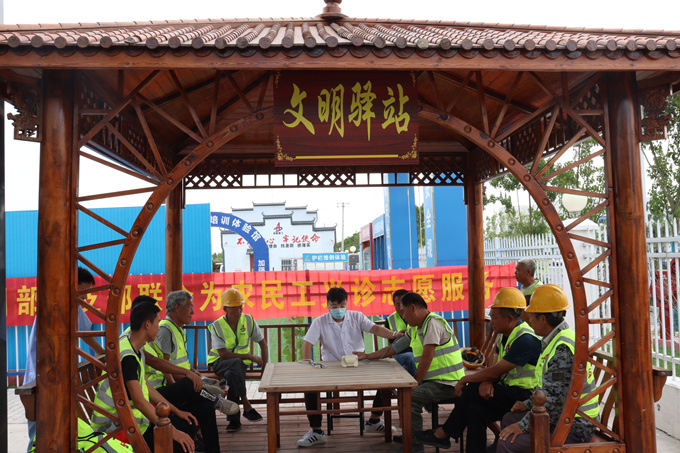 “在工地上干活根本沒(méi)時(shí)間關(guān)心自己的身體健康,今天一量血壓才知道偏高,以后還是要好好注意健康問(wèn)題,項(xiàng)目部此次開(kāi)展的免費(fèi)義診活動(dòng),讓我門在這里工作感到安心、舒心。”工友們?cè)跈z查結(jié)束開(kāi)心地說(shuō)道。在義診活動(dòng)中,醫(yī)護(hù)人員為每一位前來(lái)就診的工友們進(jìn)行了認(rèn)真檢查,為工友們提供了聽(tīng)診、健康咨詢、測(cè)血壓等服務(wù),耐心解答了工友們的疑問(wèn),并針對(duì)工友們職業(yè)常見(jiàn)病、慢性病作了講解指導(dǎo)。