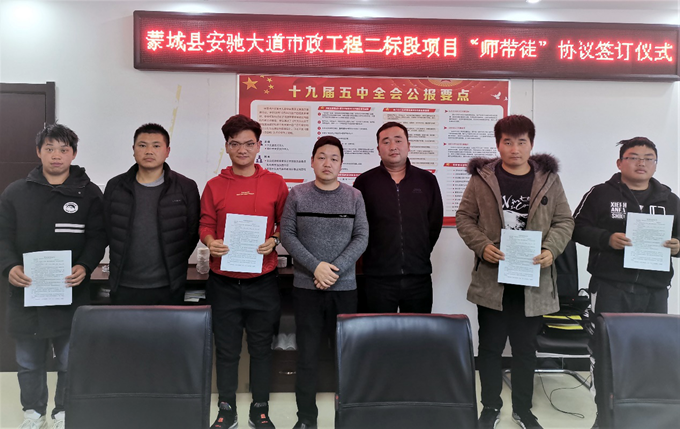 為加強(qiáng)項(xiàng)目青年人才隊(duì)伍建設(shè),促進(jìn)項(xiàng)目青年員工快速成長(zhǎng),12月12日晚,安徽交航蒙城安馳大道項(xiàng)目部組織開(kāi)展“師帶徒”協(xié)議簽訂活動(dòng),積極落實(shí)公司“師帶徒”人才培養(yǎng)方案,做好“傳幫帶”工作。