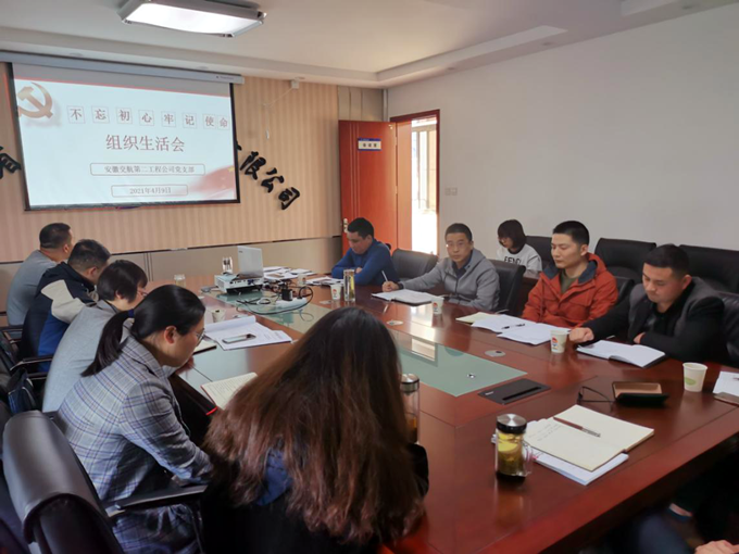 4月9日下午,二公司黨支部在五樓會議室召開“不忘初心、牢記使命”專題組織生活會。公司黨委辦公室(人力資源部)主任王學梅,二公司黨支部全體黨員、入黨積極分子、項目經理參加會議。