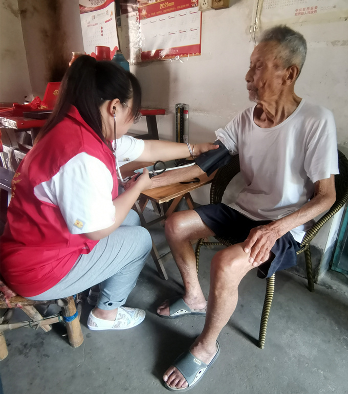 當日,項目支部書記顧永根帶領項目黨員、青年志愿者到嚴店鄉(xiāng)劉河社區(qū)、大豐村走訪慰問吳昌兵、李松兩名老兵,這兩名老兵分別參加過解放戰(zhàn)爭和抗美援朝戰(zhàn)爭。慰問中,大家詳細了解了他們的身體狀況和生活起居情況,認真聆聽了老兵們的革命斗爭英勇事跡,觀看了老兵們的軍功紀念章及獎章,并向兩位退伍老兵們送上了慰問品,表達了節(jié)日的誠摯祝福。隨后,由醫(yī)護專業(yè)的青年志愿者給兩位老兵進行了基礎性健康體檢。