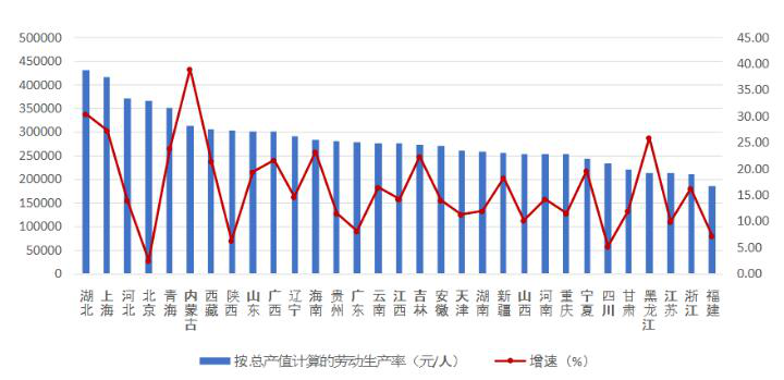 2021年上半年,各地區(qū)按建筑業(yè)總產(chǎn)值計算的勞動生產(chǎn)率均保持增長。勞動生產(chǎn)率排序前三位的地區(qū)是湖北、上海、河北,分別為432475元/人、416370元/人、371176元/人。勞動生產(chǎn)率增幅超過15%的是內(nèi)蒙古、湖北、上海、黑龍江、青海、海南、吉林、廣西、西藏、寧夏、山東、新疆、云南、浙江等14個地區(qū)(圖6)。