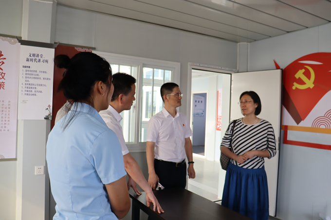 活動中,省住建廳質(zhì)安處領(lǐng)導(dǎo)參觀了引江濟淮項目部新時代文明實踐點,聽取了公司新時代文明實踐點的建設(shè)由來、功能定位、建設(shè)意義以及活動開展情況的詳細介紹,著重了解了公司新時代文明實踐點“黨建領(lǐng)航提質(zhì)筑安工作”的創(chuàng)新做法以及設(shè)立農(nóng)民工監(jiān)督員的初衷,并對公司新時代文明實踐點建設(shè)給予了充分肯定。在隨后的座談交流中,雙方首先學(xué)習(xí)了《生命重于泰山——學(xué)習(xí)習(xí)近平總書記關(guān)于安全生產(chǎn)重要論述》,并圍繞“支部建在工地上”的主題交流和討論了項目黨建工作和新時代文明實踐點的創(chuàng)新做法。