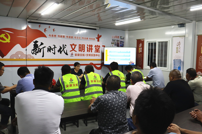 8月26日晚,公司安全監(jiān)察部主任朱云珍在引江濟淮項目新時代文明實踐點為項目施工班組人員進行了安全教育培訓。