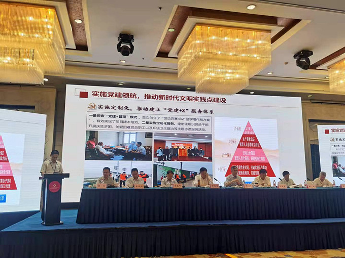會上,方申柱通過PPT形式圖文并茂地介紹了安徽交航項目黨建工作經(jīng)驗做法以及主要工作成效。在談及黨建工作經(jīng)驗做法時,方申柱從兩個大方面進行了介紹:一是聚焦一個文明實踐。即以新時代文明實踐點為載體,通過整合四種資源、實施定制化服務(wù)、設(shè)立農(nóng)民工監(jiān)督員,高標(biāo)準推動提質(zhì)筑安走深走實。二是點亮“三個紅色”。即通過打造“紅色堡壘”、激活“紅色細胞”、編制“紅色紐帶”,充分基層黨組織的戰(zhàn)斗堡壘作用。