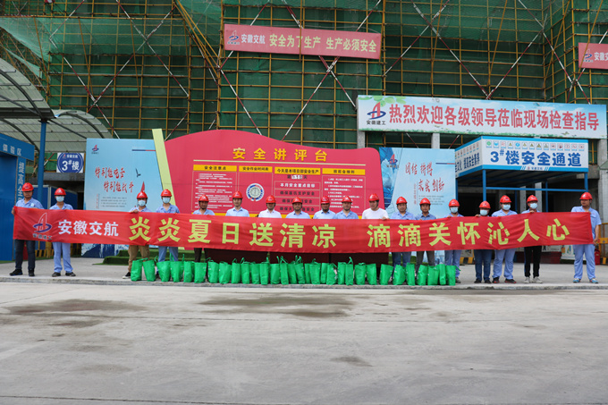 盛夏時(shí)節(jié),酷暑高溫。為切實(shí)做好一線職工的防暑降溫工作,確保一線職工平安度夏,8月3日上午,公司黨委委員、副總經(jīng)理張瓊一行赴滁州項(xiàng)目看望慰問(wèn)一線職工,為他們送去了洗發(fā)水、沐浴露、毛巾、防曬袖、防暑藥品等防暑降溫物品。