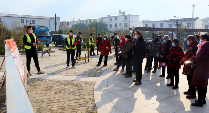 活動當(dāng)天,項目部黨員和青年團員們走進鄉(xiāng)村社區(qū)城關(guān)鎮(zhèn)武楊樓村,在武楊樓村黨群服務(wù)中心廣場向廣大村民發(fā)放宣傳資料,解答村民問題,向當(dāng)?shù)卮迕耖_展相關(guān)普法教育及憲法宣傳活動。同時,黨員和青年團員們以村民們生活中常見的法律問題為切入點,將法律法規(guī)解讀與案例分析相結(jié)合,通過簡單的事例把抽象的法律條文具體化、生動化和形象化,獲得了當(dāng)?shù)卮逦瘯按迕駛兊囊恢潞迷u。