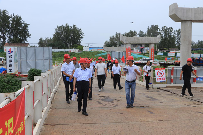 八月的文州大地草木蔥蘢、驕陽似火,利辛縣S247馬胡橋改建工程項目全體人員正在埋頭苦干。8月7日中午,亳州市交通局黨組書記、局長孫善豹,副局長徐天生一行到安徽交航利辛縣S247馬胡橋改建工程觀摩。亳州市海事局、市公路局、市各縣區(qū)交通局以及全市各交通重點項目負責人陪同。