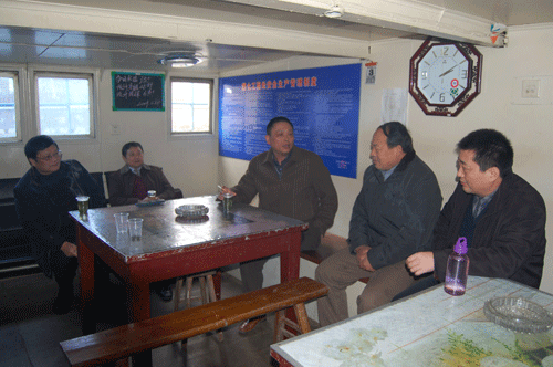 隨后,李總一行又不辭辛勞地來(lái)到在渦河施工的第七工程處,與船隊(duì)職工親切交談,就當(dāng)前施工重點(diǎn)、難點(diǎn)進(jìn)行分析、整理,現(xiàn)場(chǎng)解決當(dāng)前存在的問(wèn)題,也為下一步的工作指明了方向。