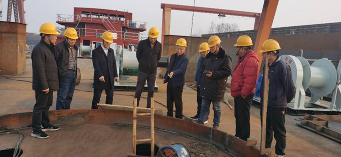 1月19日,省應急管理廳一級巡視員汪黎明一行赴安徽交航應急救援船建造項目調研。省應急管理廳救援協調和預案管理處處長魏文斌、三級調研員沈磊;公司黨委書記、董事長方申柱,黨委副書記、總經理杜海峰陪同調研。
