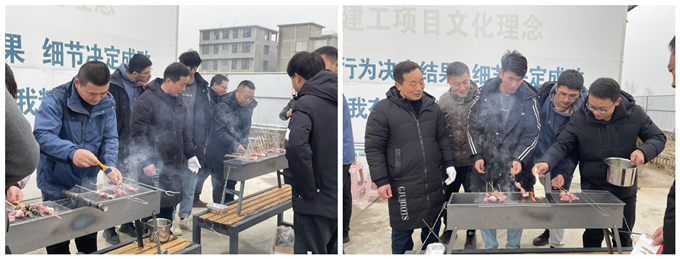 當日傍晚,全體職工一起在項目部大院內(nèi)燒烤聚餐。到場后大家分工合作、一起動手,有人洗菜,有人裝盤,有人燒炭、有人涂料,體驗了“自己動手豐衣足食”的樂趣。面對豐富的食物,大家烤得熱火朝天,吃得不亦樂乎,歡聲笑語連成片,食物的香味和大家的笑聲在項目部大院內(nèi)久久不散。