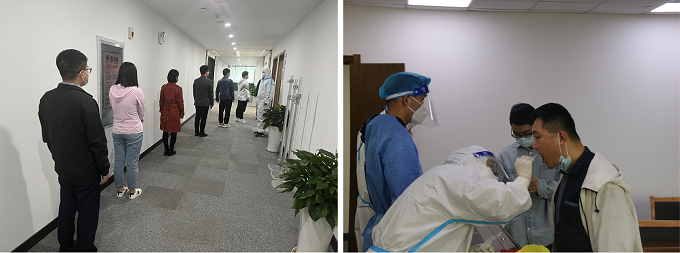 圖為公司機(jī)關(guān)防疫工作組聯(lián)系核酸檢測(cè)機(jī)構(gòu)對(duì)全員進(jìn)行核酸檢測(cè)。