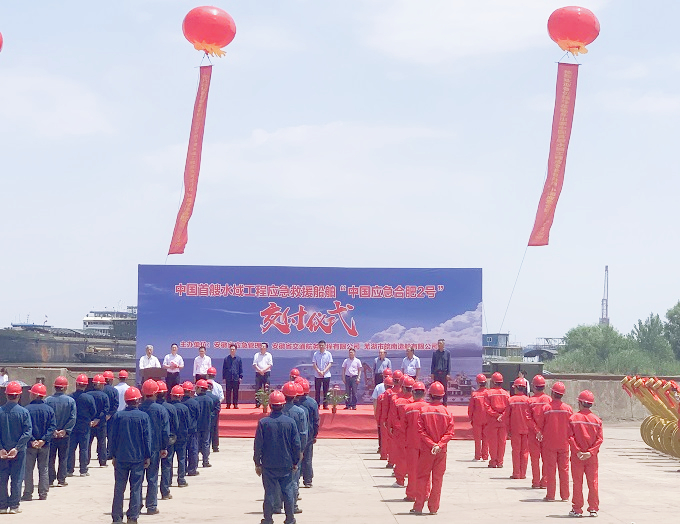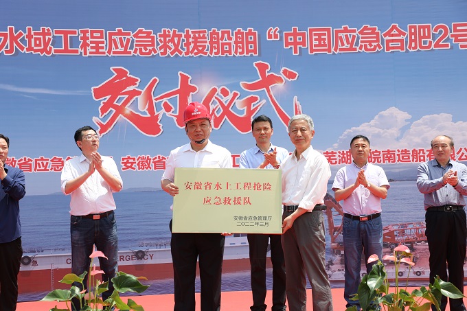 5月23日上午11時18分,伴隨著船舶隆隆的汽笛聲,在隆重的交付儀式中,中國首艘水域工程應急救援船舶“中國應急合肥2號”正式入列安徽交航應急救援基地。安徽省應急管理廳一級巡視員汪黎明,建工控股副總工程師、股份公司首席信息官吳紅星出席儀式。應急管理廳救援協(xié)調(diào)和預案管理處處長魏文斌、三級調(diào)研員沈磊,蕪湖市應急管理局副局長程克柱,安徽省皖江船舶檢驗局副局長孫成嶺、王其端,蕪湖市皖南造船有限公司副總經(jīng)理陸青松等參加上述儀式。公司黨委書記、董事長方申柱主持儀式。
