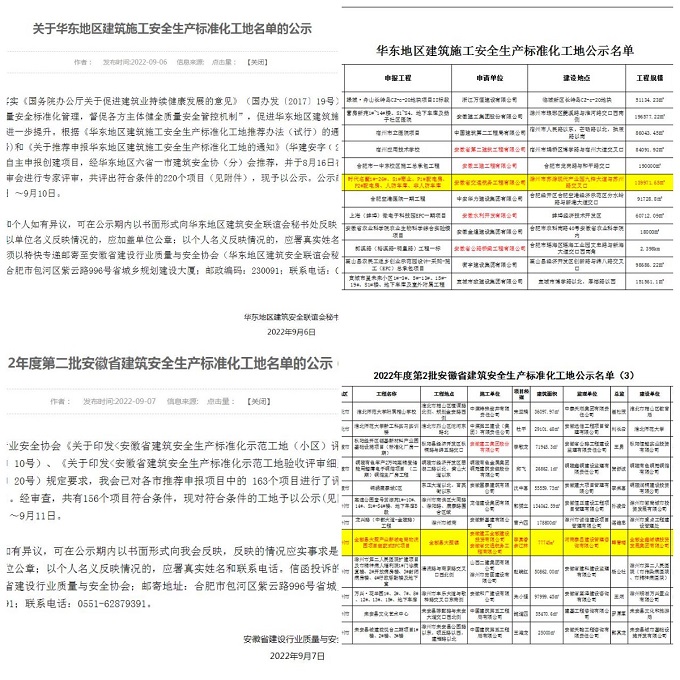 近日,從安徽省建筑行業(yè)質(zhì)量與安全協(xié)會網(wǎng)站獲悉,由安徽交航公司承建的滁州時代莊園、大墅產(chǎn)業(yè)園項目分獲“華東地區(qū)建筑施工安全生產(chǎn)標(biāo)準(zhǔn)化工地”、“安徽省建筑安全生產(chǎn)標(biāo)準(zhǔn)化工地”榮譽稱號。