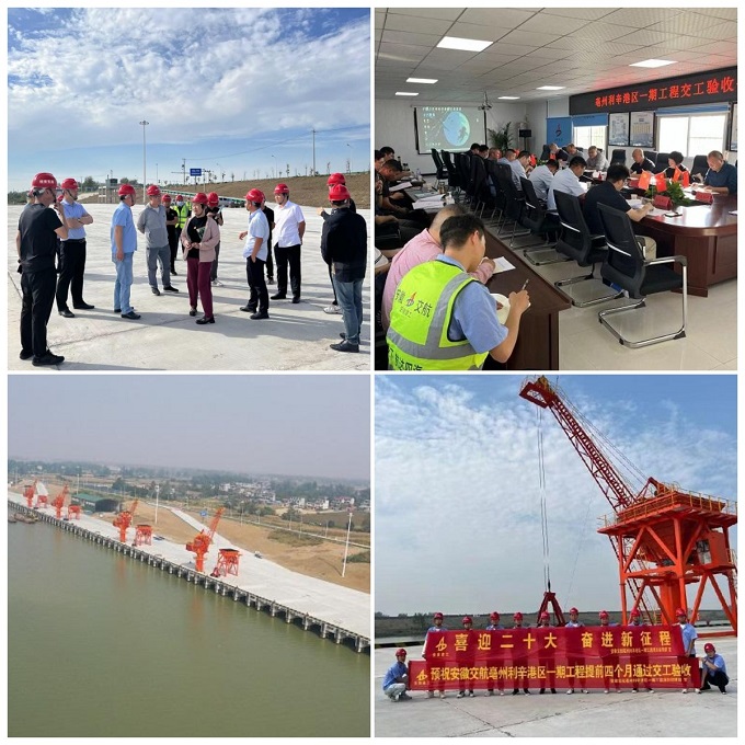 亳州利辛港區(qū)一期工程自2021年12月6日開工建設(shè)以來,受到社會各界高度關(guān)注。在利辛縣委縣政府和亳州市交通運輸局的關(guān)心和支持下,在參建各方的努力下,經(jīng)過10個月緊張有序地建設(shè),提前4個月交工驗收。施工期間,面對新冠疫情造成工期滯后的不利影響,項目部不等不靠、主動作為,緊密結(jié)合公司勞動競賽主題活動,積極動員一線職工卯足干勁,大干特干,積極發(fā)揚“白+黑”、“5+2”的苦干實干精神,自我加壓,爭分奪秒搶工期,加班加點趕進(jìn)度,保障了項目建設(shè)的高效順利實施,按照既定節(jié)點圓滿完成了項目建設(shè)任務(wù),以優(yōu)異成績迎接黨的二十大勝利召開!
