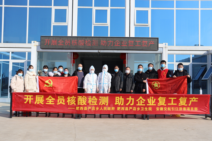 突出黨建引領(lǐng),嚴(yán)格落實(shí)疫情防控責(zé)任。引江濟(jì)淮項(xiàng)目部積極發(fā)揮黨支部戰(zhàn)斗堡壘作用,密切聯(lián)系屬地政府部門,積極開展支部聯(lián)建共建,積極探索企業(yè)新時(shí)代文明實(shí)踐點(diǎn)、鄉(xiāng)鎮(zhèn)新時(shí)代文明實(shí)踐所、村(社區(qū))新時(shí)代文明實(shí)踐站齊發(fā)力打造志愿服務(wù)陣地平臺(tái),用文明實(shí)踐賦能地方和企業(yè)高質(zhì)量發(fā)展。近日,為做好節(jié)后復(fù)工復(fù)產(chǎn)工作,引江濟(jì)淮項(xiàng)目部聯(lián)合嚴(yán)店鄉(xiāng)人民政府、嚴(yán)店鄉(xiāng)蓮花村、嚴(yán)店鄉(xiāng)衛(wèi)生院以引江濟(jì)淮新時(shí)代文明實(shí)踐點(diǎn)為平臺(tái)開展志愿服務(wù)活動(dòng),在實(shí)踐點(diǎn)設(shè)置臨時(shí)核酸檢測點(diǎn),對(duì)引江濟(jì)淮項(xiàng)目復(fù)工復(fù)產(chǎn)人員進(jìn)行全員核酸檢測,助力企業(yè)復(fù)工復(fù)產(chǎn)。