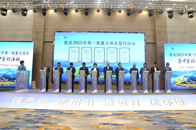 2023年4月9日上午9點,歙縣舉行2023年第一批重大項目集中簽約活動,縣委書記汪凱,縣委副書記、縣長王奇勇,縣人大常委會主任梅代軍,縣政協(xié)主席吳志良,縣委副書記吳志平等縣四套班子領(lǐng)導(dǎo)出席簽約儀式。