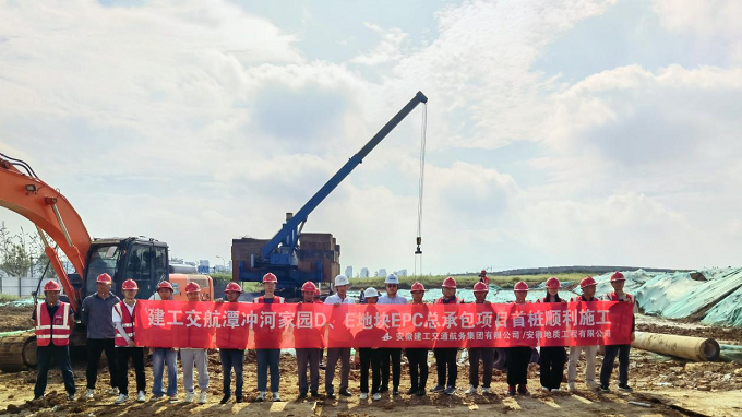 7月26日上午,建工交航潭沖河家園項目首根預制管樁順利施工。