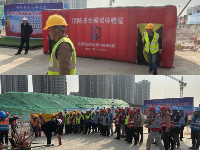 會后,項(xiàng)目部開展了消防安全逃生演練,演練模擬辦公區(qū)域突發(fā)火情情景,實(shí)地傳授防范措施、火災(zāi)撲救方法、火場人員疏散和自救逃生方法等。