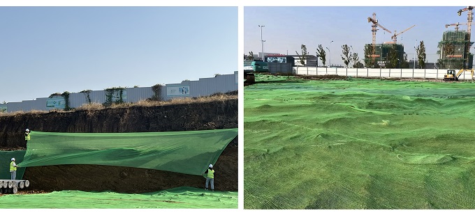 施工過程中,項(xiàng)目部以精細(xì)化管理為契機(jī),積極推廣使用節(jié)能新產(chǎn)品,助力節(jié)能減排、降本增效。一是嚴(yán)格落實(shí)綠色施工理念,合理布置現(xiàn)場規(guī)劃,統(tǒng)籌考慮臨時(shí)設(shè)施和永久性設(shè)施,有效優(yōu)化施工工序,將施工過程中用到的部分臨時(shí)設(shè)施與永久性設(shè)施一次性施工,達(dá)到降低碳排放、縮短工期、減少資源浪費(fèi)的目的。二是嚴(yán)格按照標(biāo)準(zhǔn)要求配置現(xiàn)場設(shè)備,建設(shè)廢水收集系統(tǒng),配置沖洗平臺(tái)、噴淋系統(tǒng)(圍擋、高桿、塔吊)、作業(yè)區(qū)霧炮、大陽能路燈等設(shè)備,為項(xiàng)目綠色施工提供有力保障;三是嚴(yán)格執(zhí)行裸土區(qū)域全覆蓋舉措,組織項(xiàng)目部管理人員對土方作業(yè)裸土區(qū)域鋪設(shè)防塵網(wǎng),累計(jì)鋪設(shè)面積達(dá)到3.4萬余平,有效降低揚(yáng)塵污染。