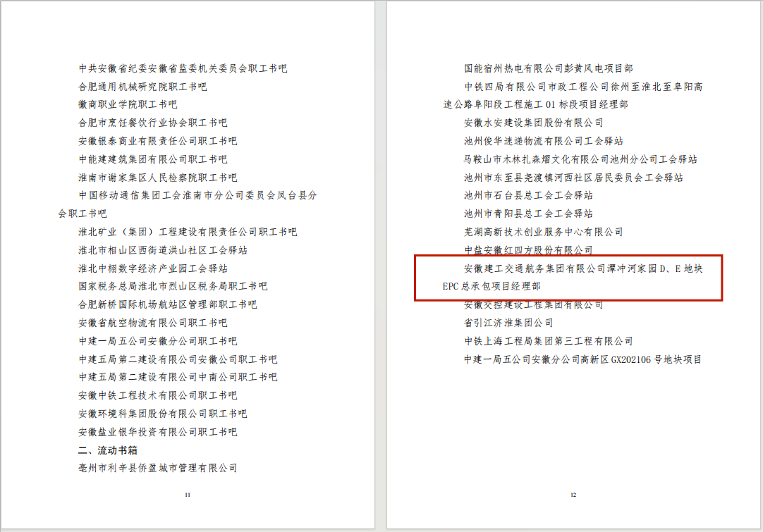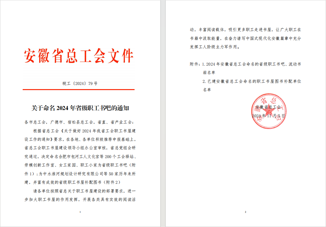 近日,安徽省總工會發(fā)布《關(guān)于命名2024年省級職工書吧的通知》,公司潭沖河家園項目榜上有名,獲評2024年安徽省總工會“流動書箱”榮譽稱號。