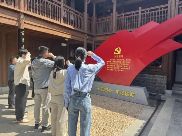 活動期間,全體黨員沿著習(xí)近平總書記的足跡走進(jìn)六尺巷。在 “禮讓” 與 “懿德流芳” 石牌坊前,黨員們駐足聆聽講解員講述 “一紙書來只為墻,讓他三尺又何妨” 的歷史典故,感受其中蘊(yùn)含的智慧與美德。隨后,黨員們參觀了六尺巷廉潔文化陳列館,深入了解中國廉潔文化的發(fā)展歷程,近距離領(lǐng)略廉潔文化的深厚內(nèi)涵。觀展結(jié)束后,全體黨員面向黨旗莊嚴(yán)宣誓,重溫入黨誓詞,回顧入黨初心,堅(jiān)定理想信念。